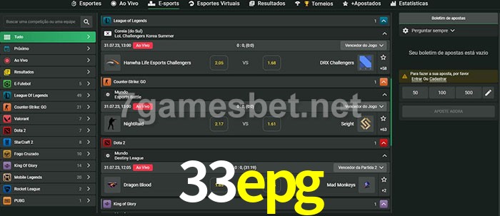 O 33epg oferece uma grande seleção de opções de apostas em e-sports com probabilidades competitivas